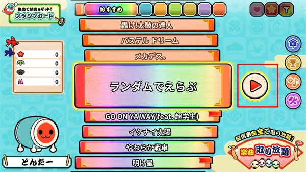 7、若需切换太鼓的敲击音色,可在歌曲选择界面点击右侧第三个按钮,进入太鼓音乐设置界面进行操作。