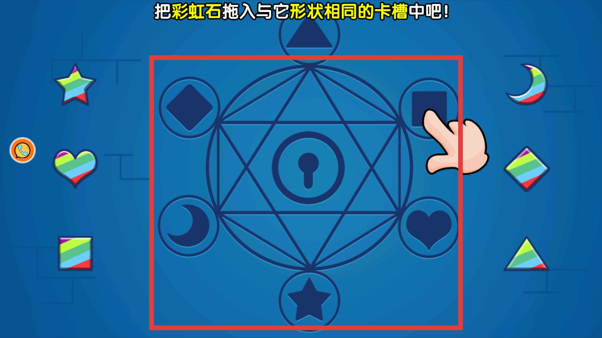 部分关卡设有解谜任务,例如借助彩虹石来解谜,按照提示将对应形状的彩虹石拖入卡槽,成功解谜后就能解锁新区域,继续的冒险过程考验着玩家的观察力与动手操作能力。