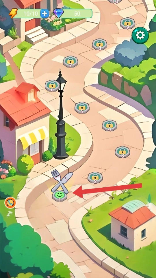 1、在游戏关卡选择界面,点击带有餐具标志的【第1关】图标进入游戏。