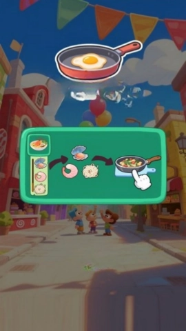 各种美食造型精美,从金黄的煎饺到淋着酱汁的蛋糕,都栩栩如生。背景音乐活泼欢快,让人欲罢不能。