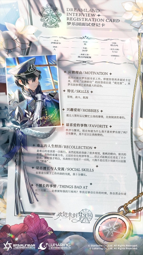 伊斯雷尔是个雷厉风行的执行者,他不苟言笑,曾是海上令人生畏的海军统领。不过,由于他平日太过严厉,性格又刻板强硬,所以身边没什么朋友。