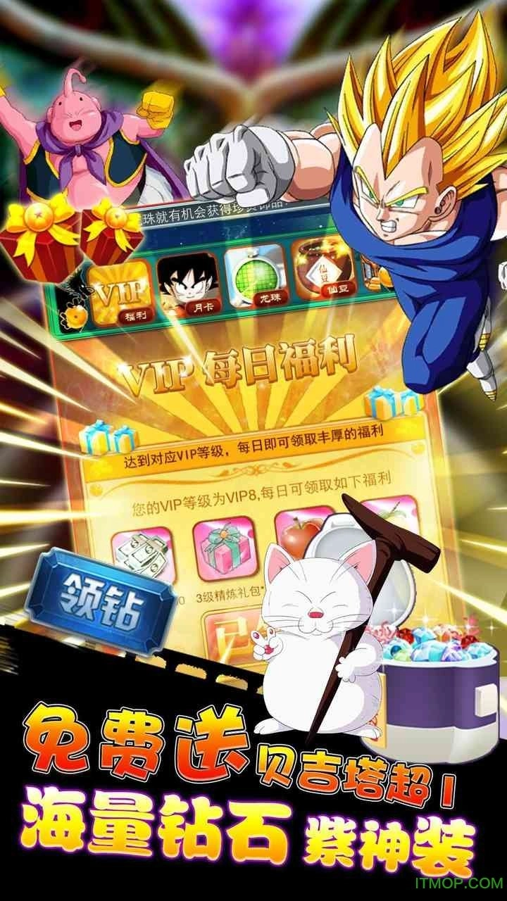在线奖励、登录游戏送超级贝吉塔、升级送海量钻石,超多免费福利让你玩得爽快!