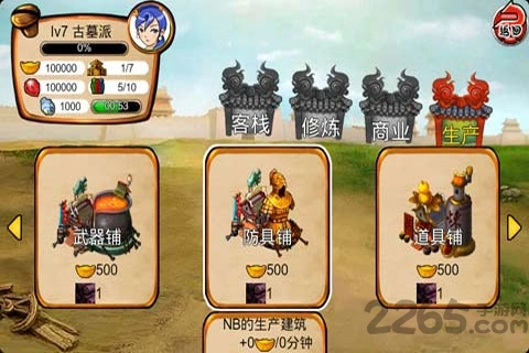 生产类建筑能够产出游戏里的大部分道具装备,修炼类建筑是玩家培养弟子能力的地方,商业类建筑主要为玩家带来收益。