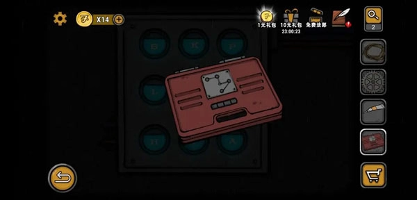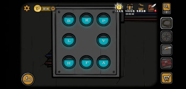 点亮后取出工具箱,与九宫格进行比对,最终确定开箱密码是BKVF。
