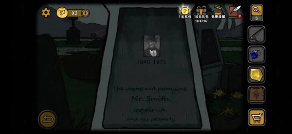 我随手抄起屋边的铲子冲进墓园,一块墓碑很快吸引了我的注意。对照墓碑上的信息与手中的族谱,我确认此人正是史密斯家族的第三代传人——起初差点记错成空条承太郎,实际是史密斯·芥末丝(Smith. James)。果然,在他的棺材上写下“芥末丝”三个大字后,棺材立刻就打开了。