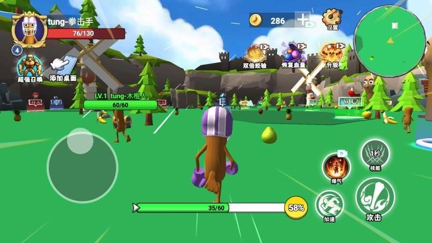 右下角会显示技能栏,玩家可以靠近异兽释放技能,也能在加速跑动时使用技能。