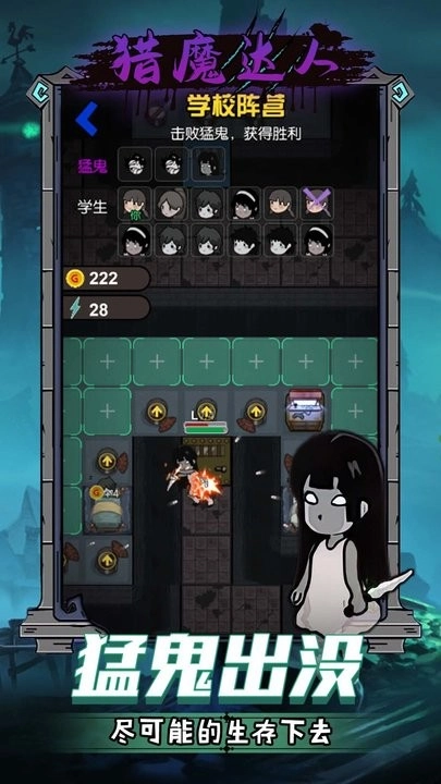 猎魔达人安卓版是一款趣味十足的冒险闯关游戏,它运用了恐怖风格的画面设计,搭配卡通化的角色形象。在游戏里,你得灵活运用攻防策略,布置各类塔防设施来阻挡猛鬼的进攻,还要加固室内的门窗,搭建更多防御工事,通过躺平发育的方式坚守住防线,完成一场场紧张刺激的挑战!