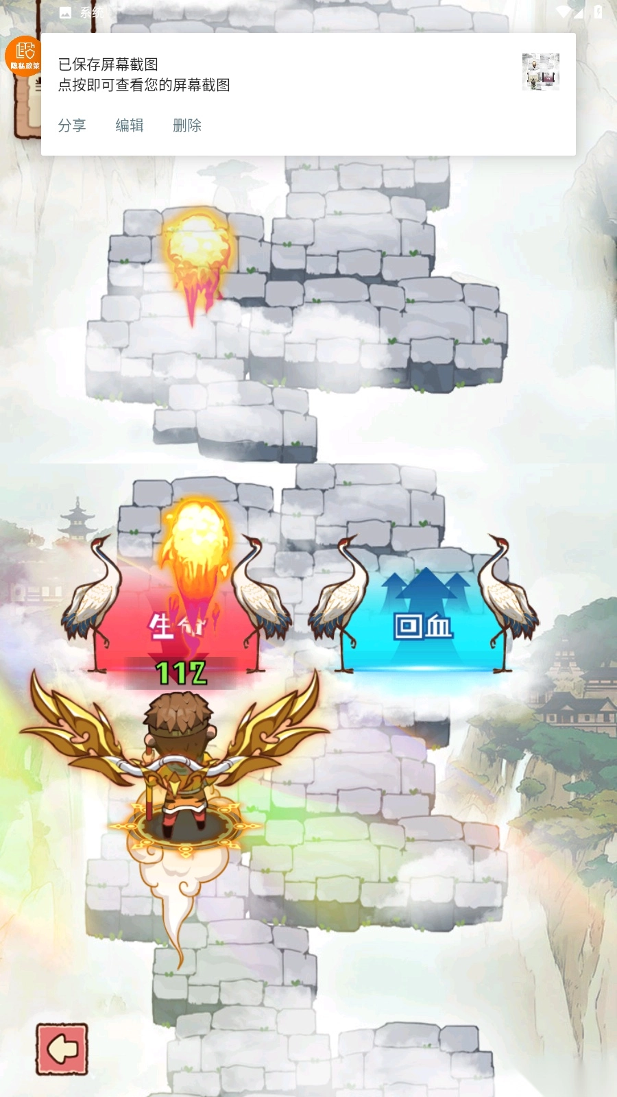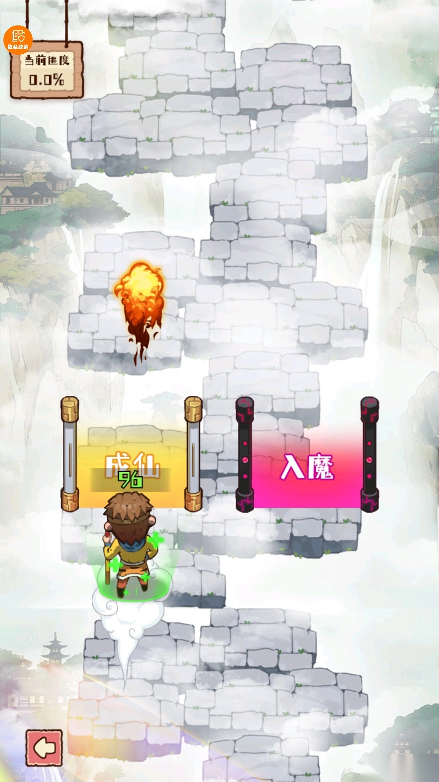 如图所示,玩家操控角色左右移动时,既能攻击敌人,也能拾取沿途的道具,进而直接达成成仙或入魔的状态。