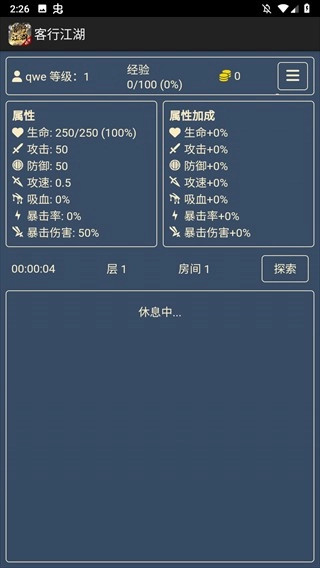4、进入游戏后,玩家点击“探索”按钮即可开始探索地图。在探索过程中,玩家可能会遭遇敌人,也可能遇到各种奇遇或资源点,还能拾取敌人被击败后掉落的金币。