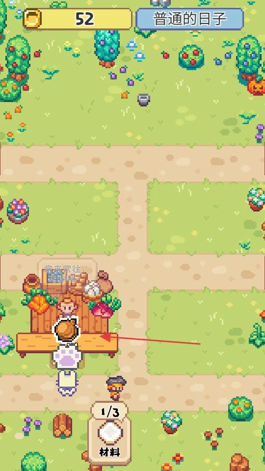 市场场景中,与摊位NPC互动,收集材料推进经营。