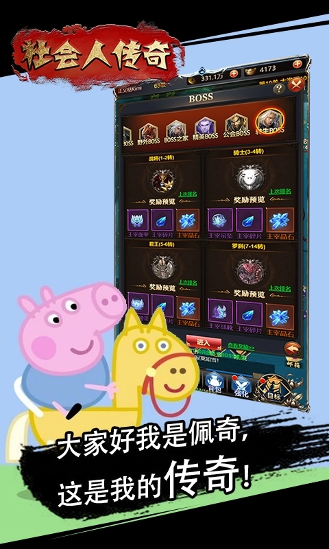 社会人传奇公益服是一款经典的社会人传奇游戏,它延续了传统1.76复古攻沙的经典玩法,热血竞技pk、连击对战炫酷刺激,还有超多精彩关卡可供挑战,超值新手大礼等你上线领取,快来2265网试玩吧!