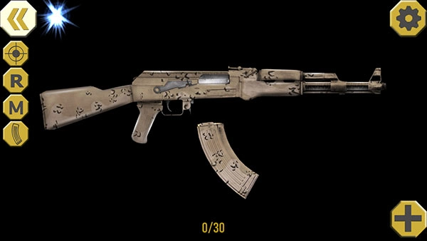 现在点击左侧最下方的弹夹图标,插入新弹夹后,再点击R按钮完成上膛操作。