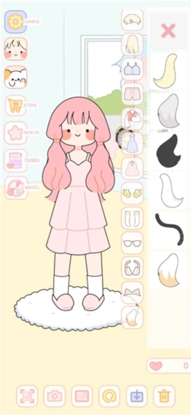 二次元形象塑造,轻松自由的休闲游戏,上千种物品,大胆组合打造百变少女;