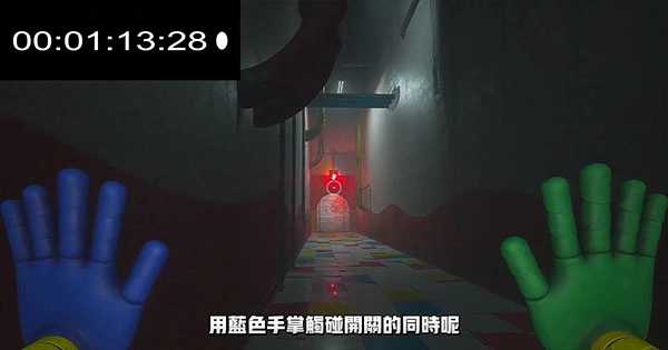 当手套收集完毕后会自动戴到手上,此时能看到墙的两侧有红色和蓝色的手印,玩家只需将手套对准对应的区域,就能打开房门。