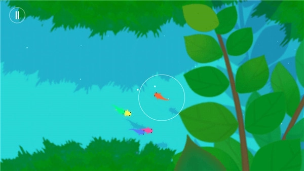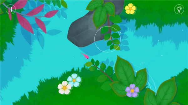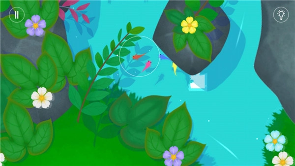游戏的玩法十分简单,玩家在游戏里要操控一条鲤鱼去寻找其他不同颜色的小鲤鱼,然后带着这些小鲤鱼找到和它们颜色对应的花朵,让花朵绽放,这样就能开启进入下一关的通道了。