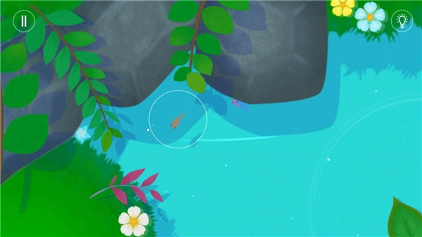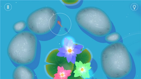 操控你的小鱼,找寻其他鲤鱼,开启对应颜色的花朵;