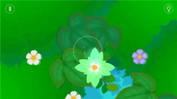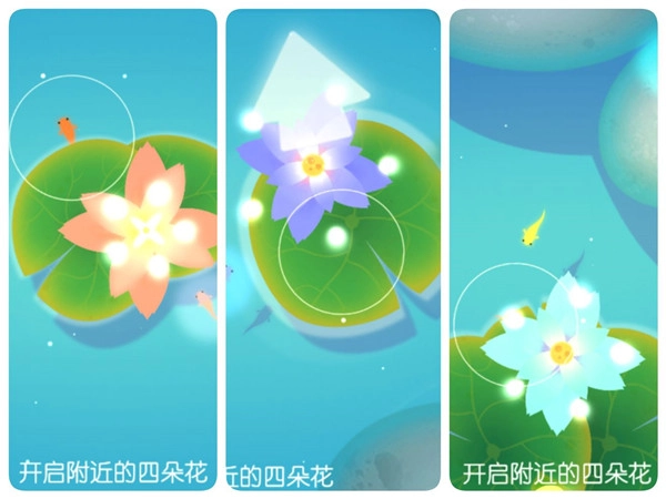 游戏的操作十分简便,只需在屏幕上进行点击或滑动,就能操控小鲤鱼的行动。当我们带领其他小鱼来到对应颜色的花朵旁时,点击一下花朵上方的白色按钮,花朵便会绽放。