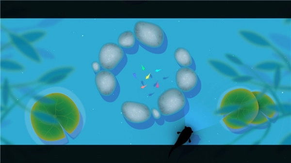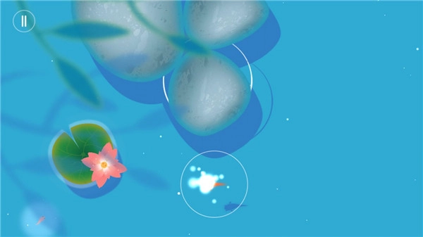 唯美画面: 绚丽的扁平化色彩风格与充满奇幻色彩的东方自然元素巧妙融合,勾勒出一方清新静谧的荷塘景致。玩家化身灵动的小鱼穿梭其间,心绪也随之褪去浮躁,归于平和。