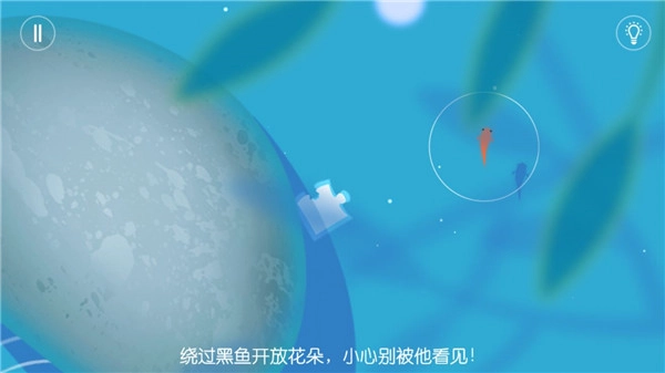 第一关其实就是教你游戏的基本玩法,比如小鱼怎么游动、怎么带着小鱼去开花,而且全程都有指引提示,这些大家一看就明白,我就不再啰嗦啦!