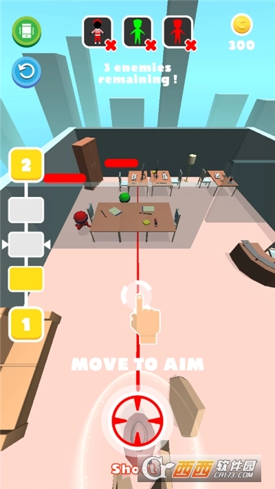 《看我拿三杀》是一款具备真实射击物理反馈的休闲游戏,物理引擎让场景呈现出更逼真的效果。在游戏里,玩家需要使用手中的武器射击敌人,体验不同的结局走向。游戏操作采用轻松的点击方式,但要留意武器的子弹数量是有限制的。