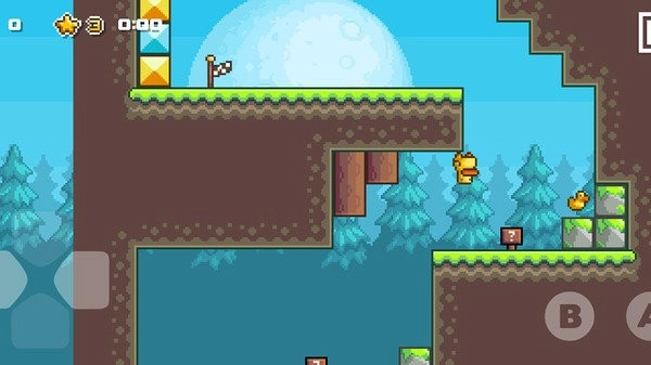 控制小黄鸭的移动与跳跃:点击虚拟键盘的方向键可以操控小黄鸭移动,按下A键能改变它的重力方向,B键则是用来让它跳跃的。
