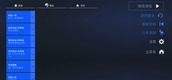 完成游戏指定的任务后,就能获取相应得分,进而解锁各式各样的山羊。