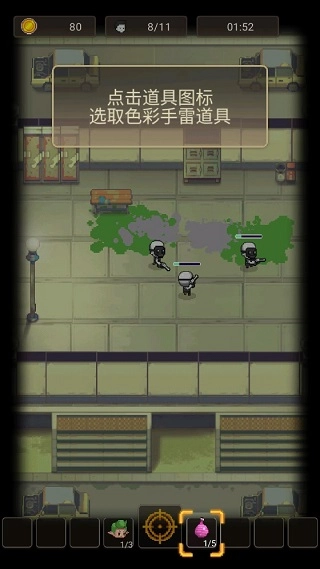 点击道具栏图标,选择色彩手雷等辅助装备。