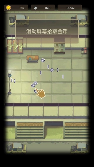 滑动屏幕收集掉落的金币资源。