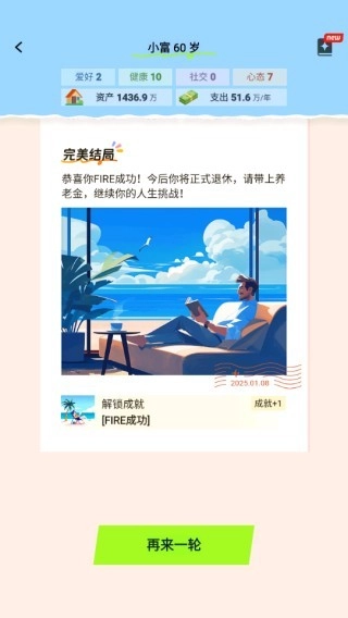 3. 游戏着重凸显理财智慧与人生哲学的价值,以此鼓舞玩家在现实里大胆追寻自由的生活。