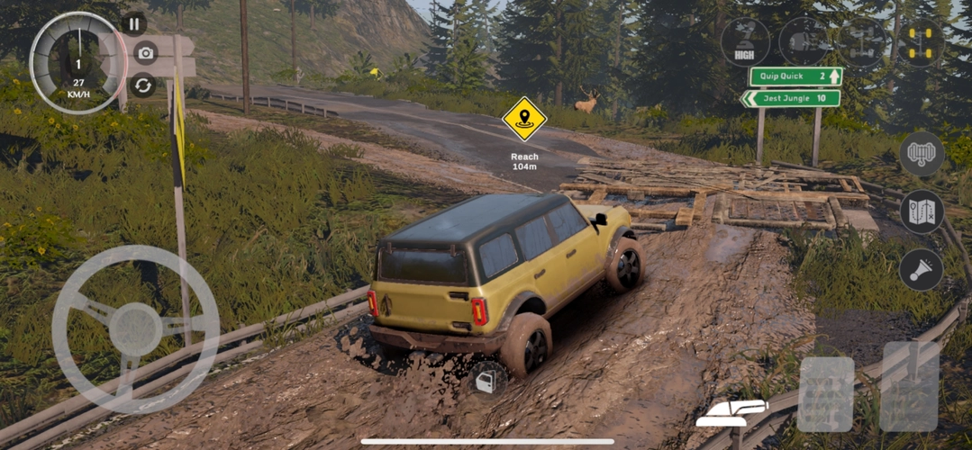 2. 围绕越野这一核心主题,游戏会在赛道中融入各类极限地形元素,以此增加驾驶环节的挑战难度。