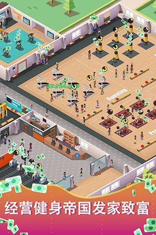 这里有个相当经典的商业模拟玩法,您能自由规划健身房的发展路径。