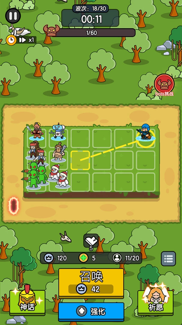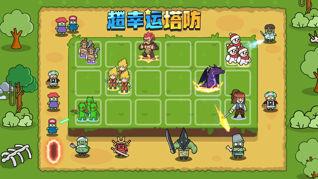 超幸运塔防是一款玩法有趣的独特塔防游戏,游戏随机性很高,玩家通过召唤功能会随机获得不同角色,而敌人没有攻击力,只会沿着地图循环移动。玩家可以轻松游玩这款游戏,享受简单塔防带来的乐趣。