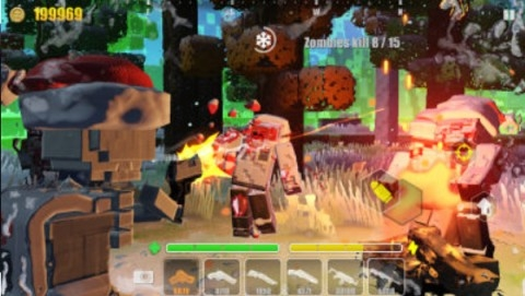 方块猎人背景中,玩家身处充满危险的开放世界,比如岛屿、城市等场景,需要对抗大量僵尸和会变形的方块怪物。游戏采用第一人称视角,带来激烈的战斗体验,无论是近距离对抗还是策略周旋,都考验玩家的反应和操作能力。