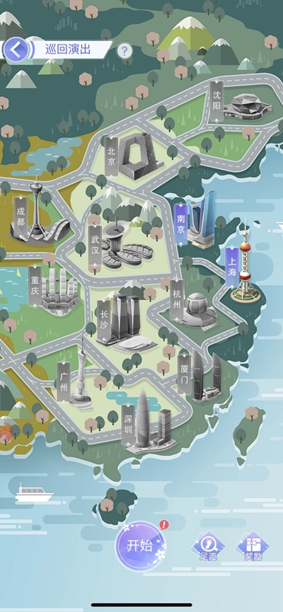 更多可进行巡演的城市会在主线剧情完成通关后解锁,解锁所需的条件能够在“奖励”板块中进行查看。