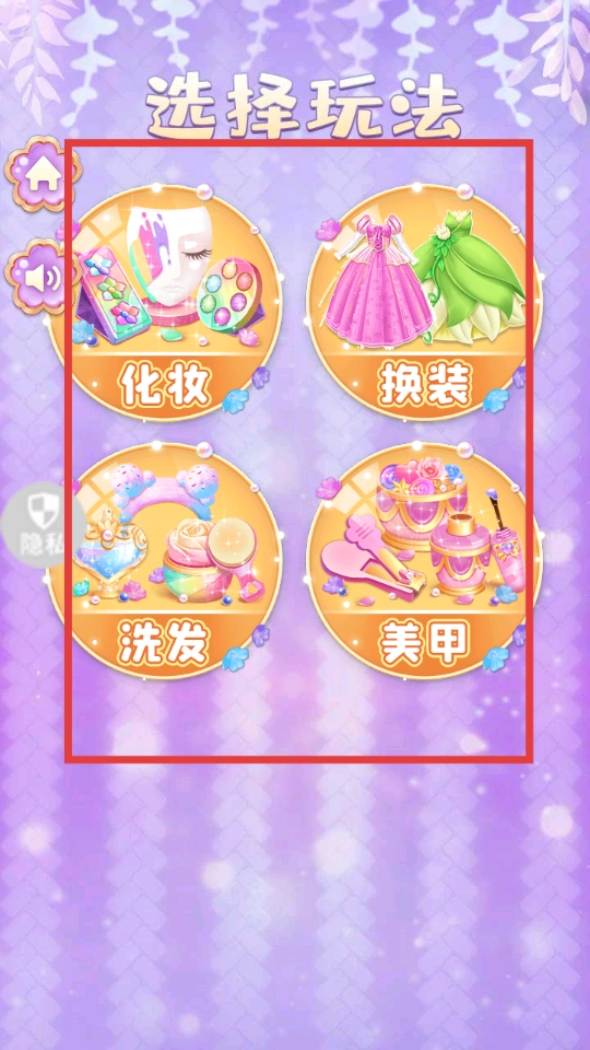 在玩法选择界面中,玩家可以看到化妆、换装、洗发、美甲等多种不同的玩法选项。当玩家从中挑选一种玩法(例如化妆)后,系统便会引导其进入对应的操作场景,进而开启相关的装扮操作流程。