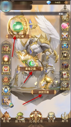 1、进入后,在主界面会有冰封王座、雾霭之森、虚空幻境三种模式,随意选择一项就可以了。