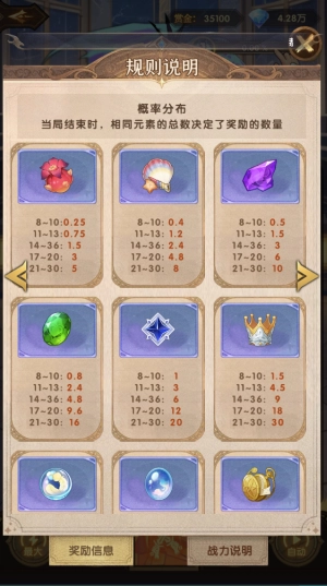 2、首先是虚空幻境,这一模式下需要点击下方的按钮进行,根据每一次刷新的对应元素数量来给与积分,具体分数如图所示。