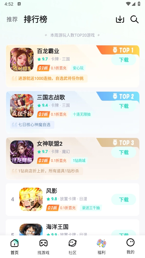 一元卡牌游戏盒子专为爱好者打造,新人注册即可免费领取大礼包,平台汇聚BT版、mod版游戏资源及超值0.1折福利,所有内容均为正版授权,保障玩家安全畅玩,完成指定任务还能额外获取丰厚奖励。