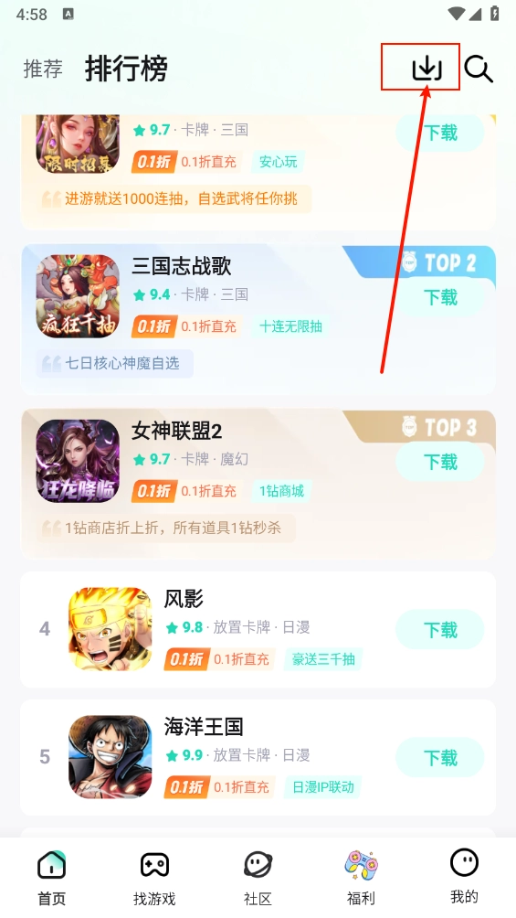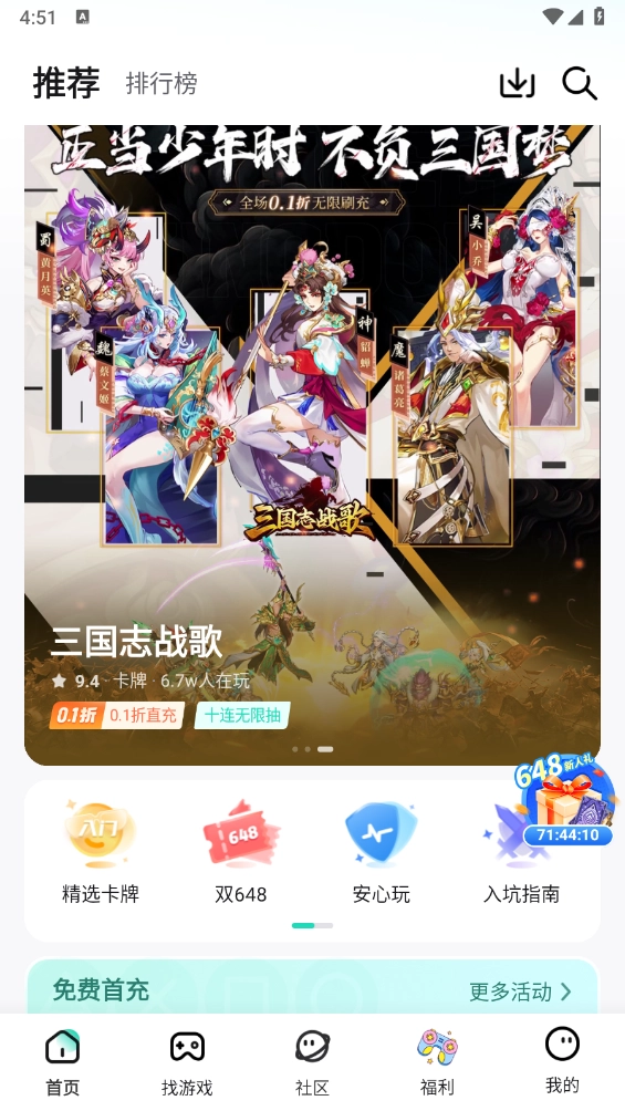2、打开软件,首页下滑就可以查看超多的热门游戏。