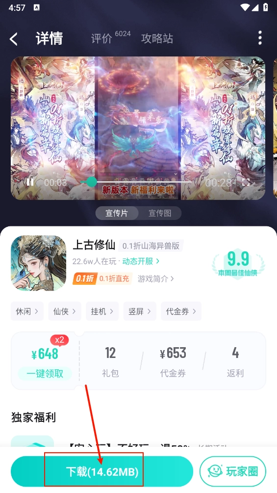 2、进入游戏详情页面查看游戏礼包与代金券,点击对应按钮即可。