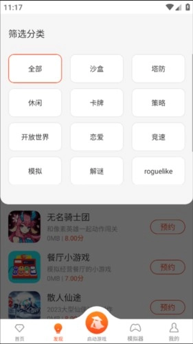用户可以自主挑选想玩的游戏类型,目前平台提供的游戏类型相当齐全,几乎覆盖了常见的各类游戏品类。选定游戏类型后,还能按照热门程度、上线时间(最新)或评分高低来重新排列游戏列表,这样有助于玩家更高效地从品质较好的游戏里找到心仪之作。