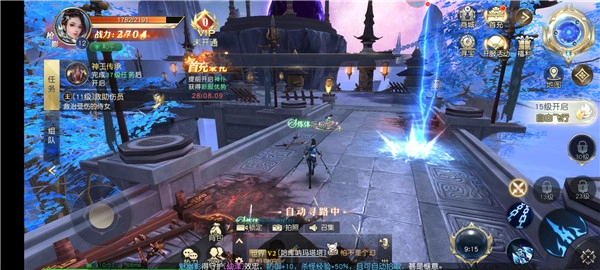 要是遇到杀怪或者寻人这类任务,我们完全不用手动操作,系统会自动去寻找NPC、进行巡逻,任务完成后还能自动返回。我们只需要在和NPC对话的时候点击一下屏幕就可以了。万一不小心取消了自动导航,我们可以点击界面右侧任务栏里的绿色文字,系统就会重新开启自动导航。
