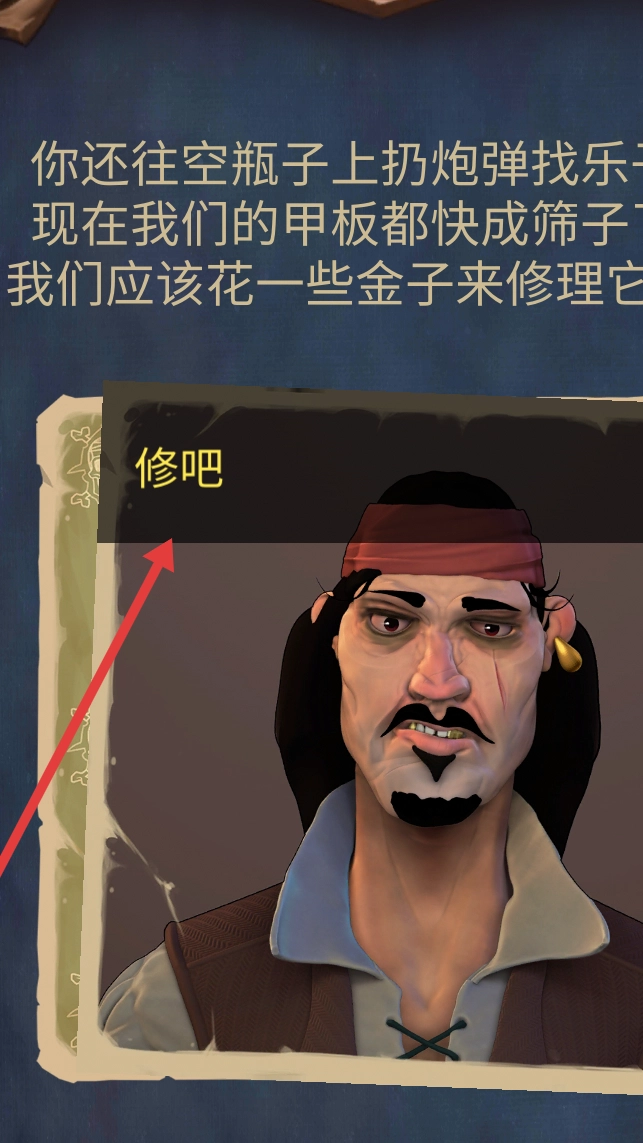 当甲板出现破损时,将移动选项卡片切换到“修”的选项上,通过消耗金子来对甲板进行修理,以此提升船只的耐久度。