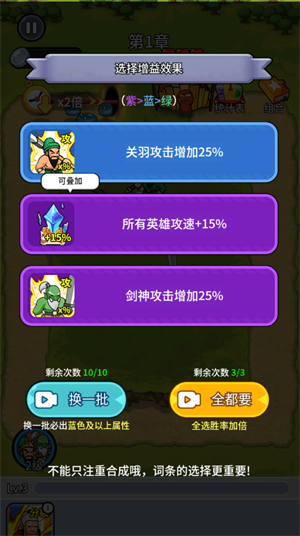 2、背包管理策略:游戏引入了背包管理的概念,玩家需要在有限的背包空间内做出策略性的摆放选择,以最大化战斗属性并召唤出最强的英雄阵容。