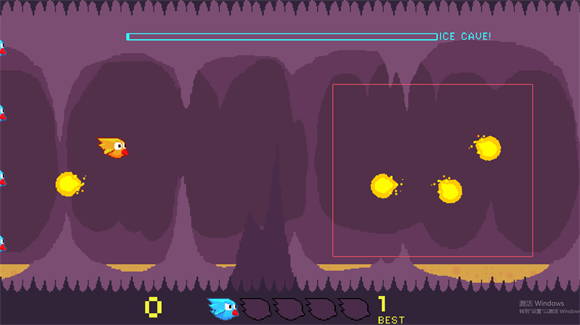 4、让小鸟飞行时要留意避开上方和下方的尖刺,否则游戏就会失败。