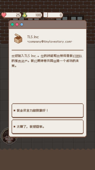 《小小爱情故事》(英文名Tiny Love Story)是一款像素风格的生活模拟经营类小游戏。在游戏里,玩家将化身主角打理自己的温馨小家:既能自由装扮房间、邂逅新伙伴,还能通过上班赚取收入,逐步把小家经营得愈发美好。