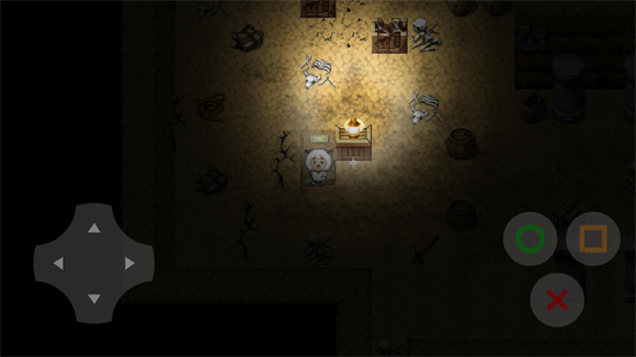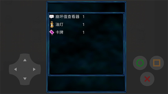 3、进入游戏后左边控制角色的移动,右边的圆圈是互动调查按键,方框是加速移动,红叉是菜单按钮点击可以打开背包。