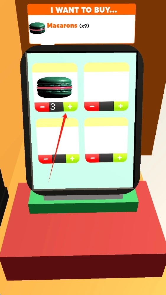 在点餐界面,选择马卡龙Macarons的数量,可根据自身需求进行调整,完成点餐操作后,点击增加物品数量的按钮。