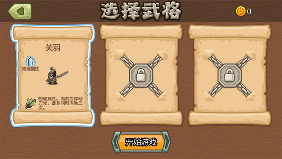 2、挑选你想要玩的武将,一共有三种武将可以选择,