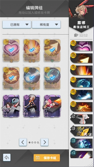 4、获得卡牌之后可以在角色处自定义更换牌组